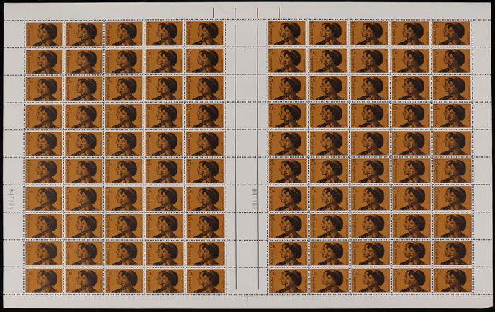 6c sheet of 100 with Autotrons at top, both sheet numbers & all 5 ACSC listed varieties 'retouch on technician's back' (Pos LP3/1) & 'weakness in brown at upper left'. Twelve stamps with rev tone spots o/w F-VF MNH. SG 474(var). ACSC 543 d e z za zb