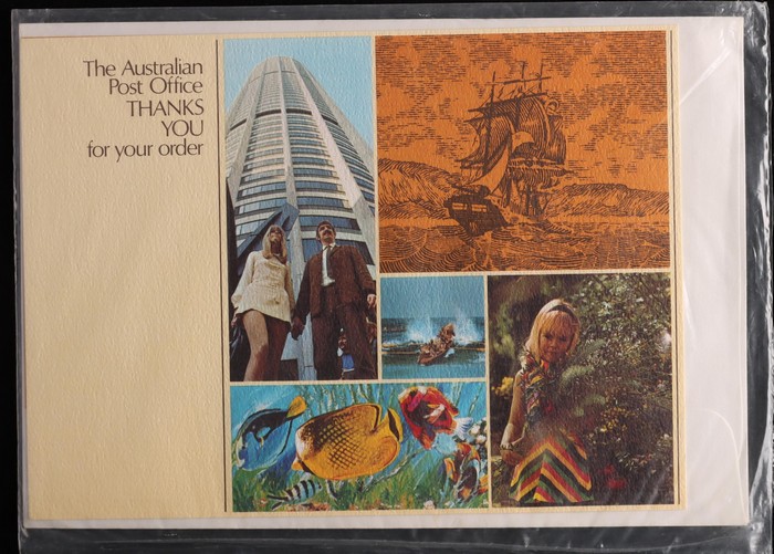 pack with Japanese insert 1970 Expo pack with all Japanese writing inside. Expo pack neatly opened, with Australian only issues for comparison. Retail $200+. (4).