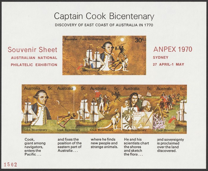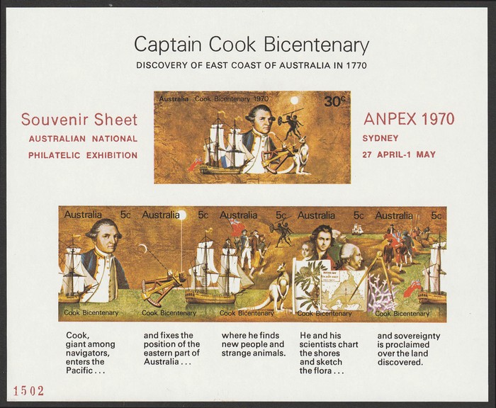M/Sheet with Forged ANPEX opt Number 1502. VF fresh MNH. ACSC 528(var) cat $80. Forgery was produced by Orlo-Smith & was subject to a court ruling that all stock be destroyed.