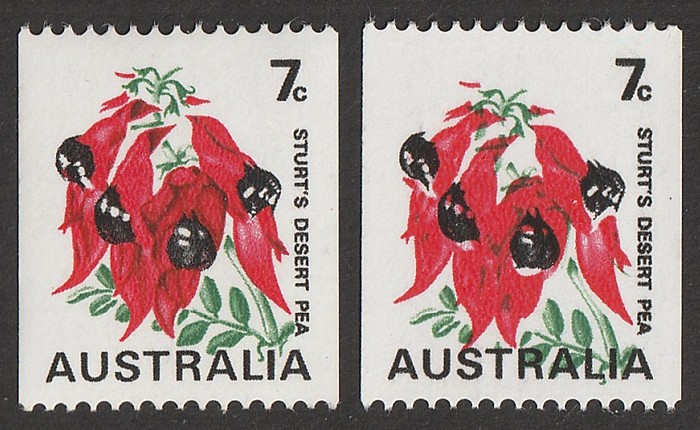 with variety 'MISSING Buff (details on red flower petals) & misplaced green.' VF fresh MNH with normal for comparison. SG 468bb cat £450. ACSC 535ce cat $300.