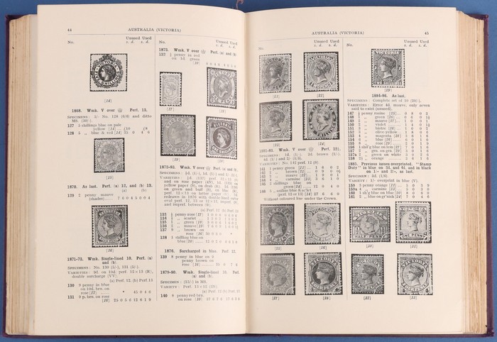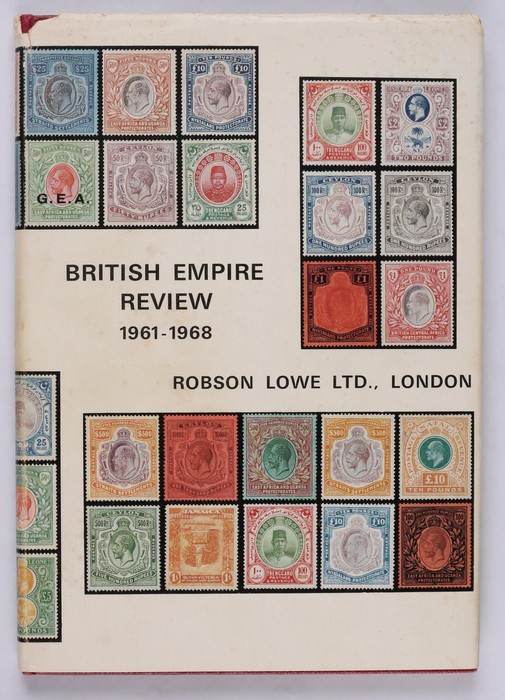 British Empire: Robson Lowe handbook collection with Vol 1 Great Britain & Europe, Vol 2 The Empire in Africa, Vol 3 The Empire in Asia, Vol 5 North Americas I & II, Vol 6 Leeward Islands. All F-VF. Plus Empire in Australia (Vol 4) Billigs reprint