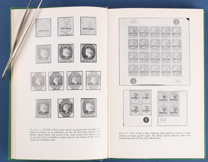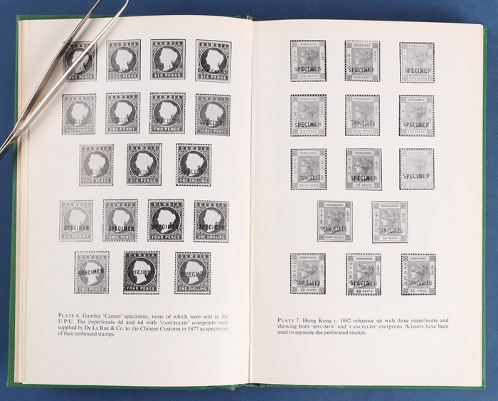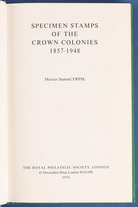 Specimen Stamps of the Crown Colonies 1857-1948 by Samuel, pub RPSL 1976 inc Rowland Hill cancelled types, Postal Authority Specimens, UPU Specimen opts, DLR productions & much more. 255 pgs inc bibliography. Long out of print. Near new. (Image1) (Image2)