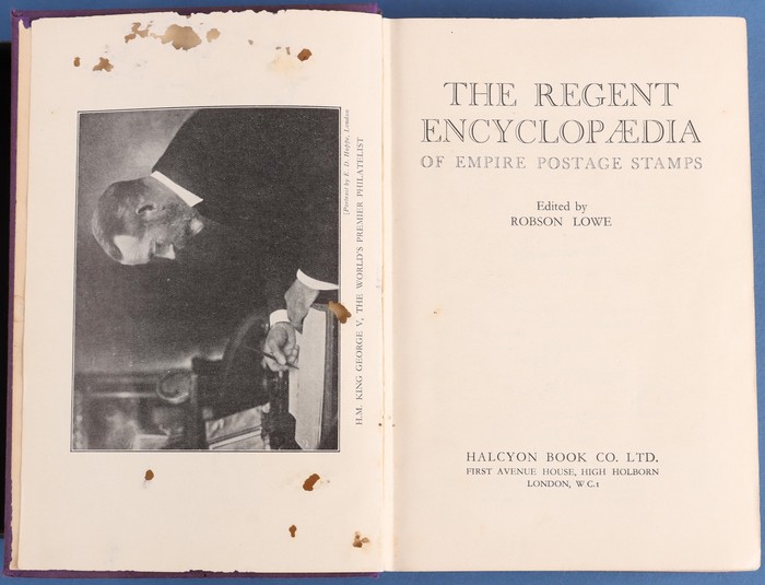 The Regent Encyclopaedia of Empire Postage Stamps, Robson Lowe editor, inc selection on detection of forgeries with description & 4 photo-plates. Insect damage to first page, G/VG condition. (Image1) (Image2)