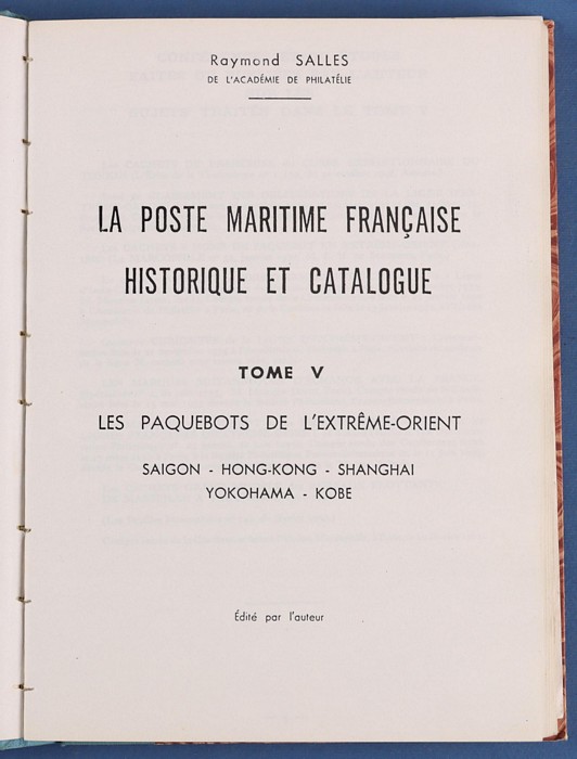 Maritime Francaise Historique et Catalogue. Tome V. Les Paquebots de L'Extreme-Orient, Saigon, Hong Kong, Shanghai, Yokohama, Kobe. 207 pgs, re-bound, pub early 1960s plus 1966 supplement. VGC. (Image1) (Image2)