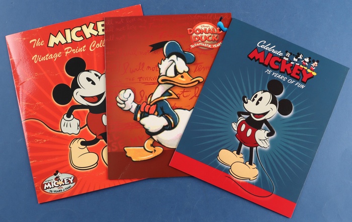75th Anniv & Donald Duck 70th Anniv packs with sheetlets of 10, & Mickey 'Vintage Print Collection' of 5 posters. VF fresh MNH. FV $10. (Image1)