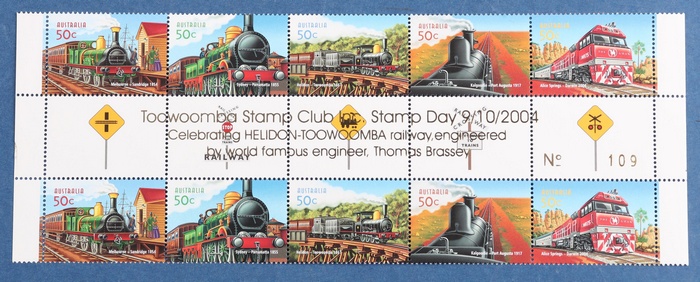 gutter strip with Toowoomba Stamp Club opt, numbered. VF fresh MNH. SG 2429-33(var). Only 130 made. Retail $30. (Image1)