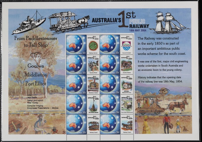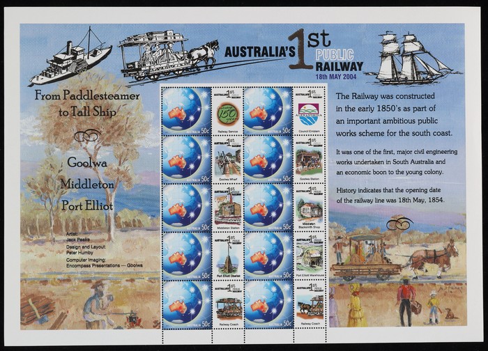 Australia's 1st Public Railway $5 SES 50c Globe with various Railway tabs. Artist Jack Peake. VF fresh MNH. (Image1)