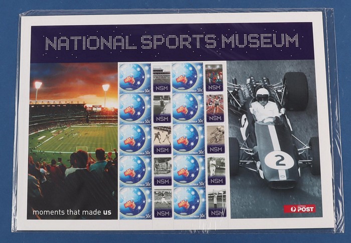 sheetlets of 10 with club symbols on tabs of 50c Kangaroo stamp. VF fresh MNH. FV $75 alone. Very scarce. (15) (Image1) (Image2)