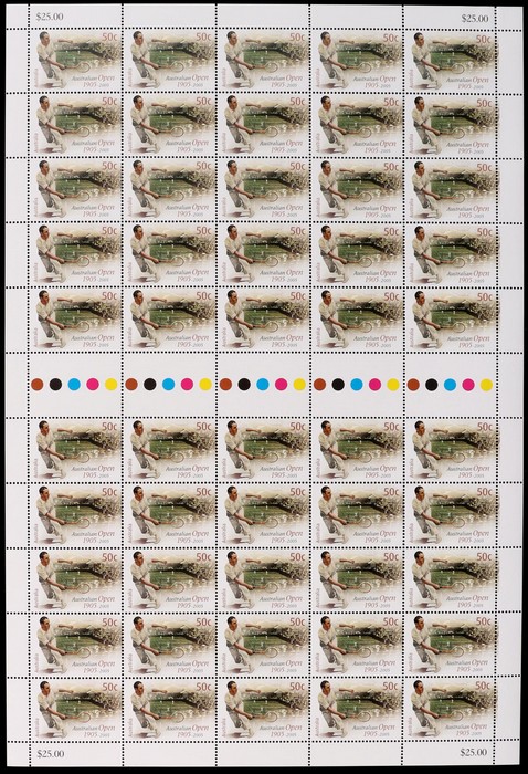 Open Tennis $5 SES various backgrounds with 50c Globe (3), 50c Kangaroo (3) or $1.10 Koala (2007), various generic/logo tabs. 2007 both 50c & $1.10. VF fresh MNH. FV $41 alone. (7). (Image1) (Image2)