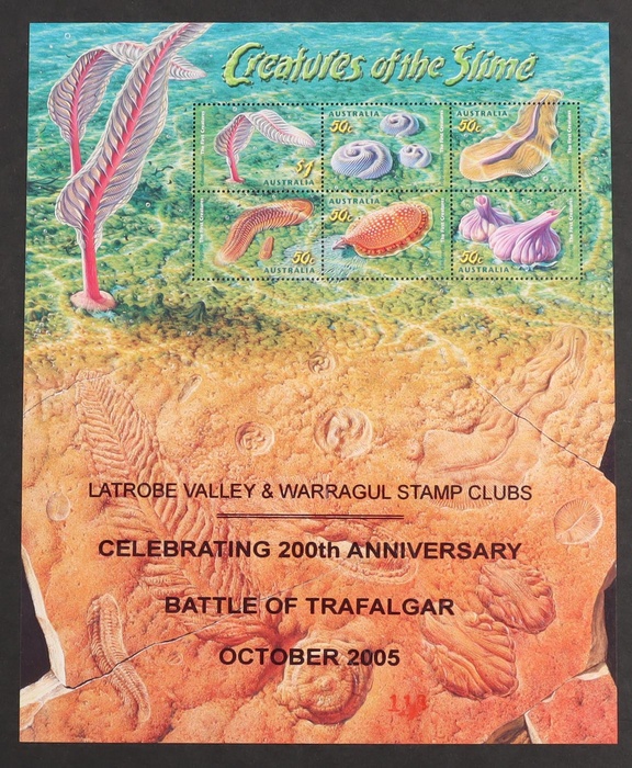 the Slime jumbo $3.50 M/Sheet, opt Battle of Trafalgar, numbered. VF fresh MNH. SG MS2516(var). Retail $38. (Image1)