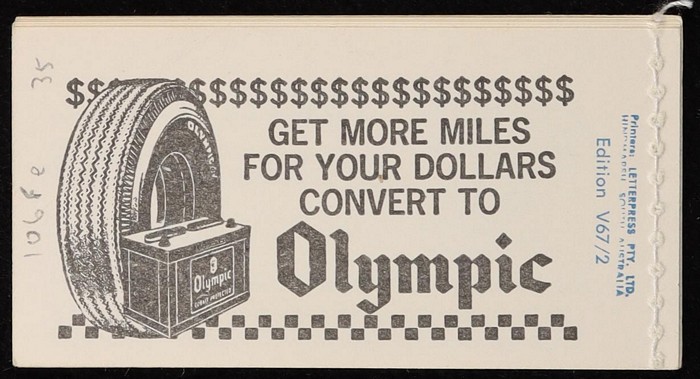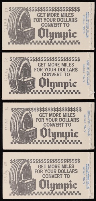 permanent cover, edition N67/3, 4 diff tabs, matching adverts. VF MNH. SG SB41a. Pfr B123Ad-g cat $150. (4). (Image1) (Image2)