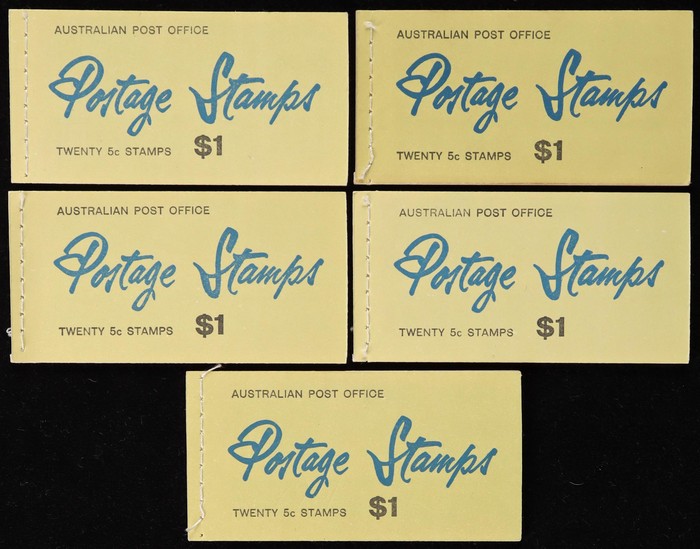 $1 temporary opt cover, & permanent covers (4) with QEII 5c/4c red panes. F-VF MNH. SG SB 40/41. Pfr B110Af, B123Ad(2), & B123Ae cat $115. (5). (Image1) (Image2)