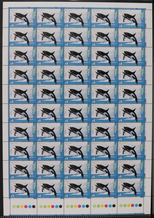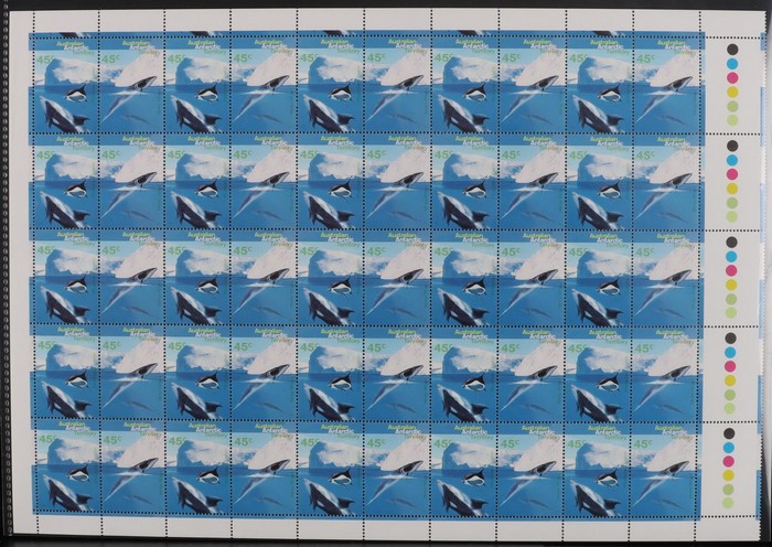 Dolphins set 45c-$1 M/Sheets of 100. VF fresh MNH. SG 108-11. FV alone $190. (3 sheets). (Image1) (Image2)