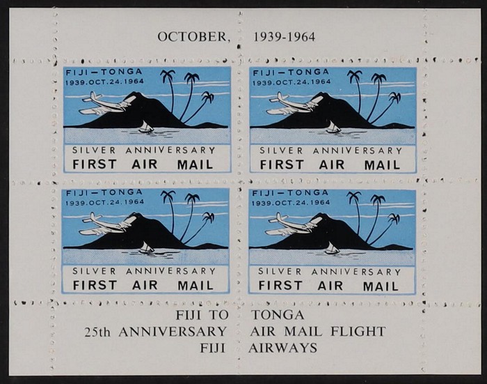 2855 imageFiji - Tonga 1964 25th Anniv Airmail Flight M/Sheet with 4 pictorial vignettes. Fresh MNH. (Image1)