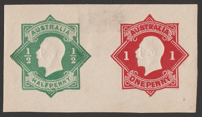 2860 imageEnvelope: 1918-19 KGV Star ½d green + 1d red (Die 4) doubleton cut-out. VF UN. ACSC EP14(var) cat $150 for full envelope. (Image1)