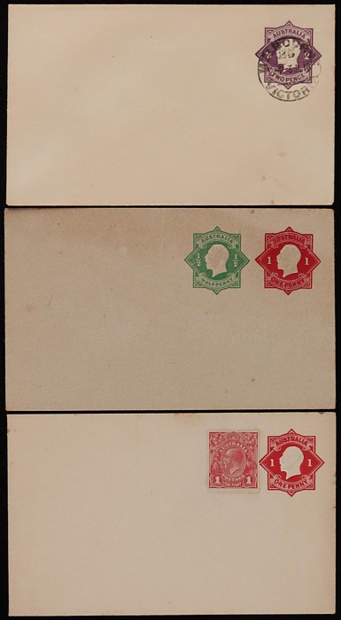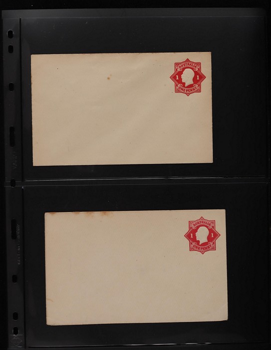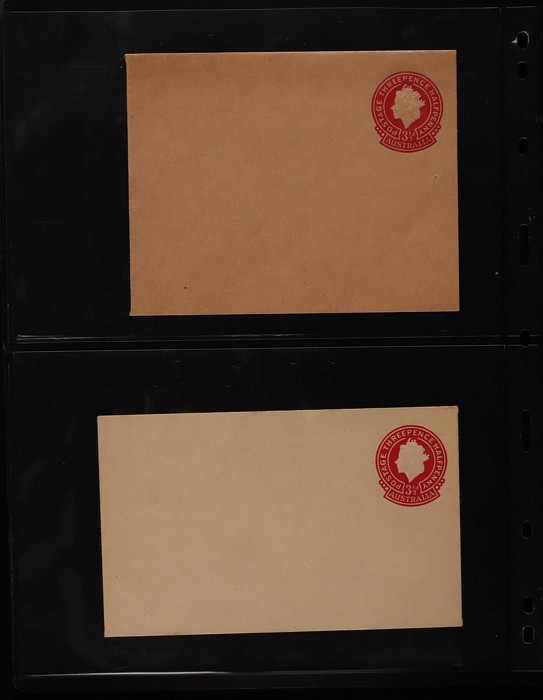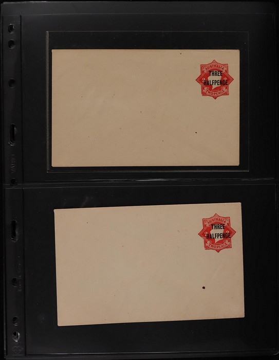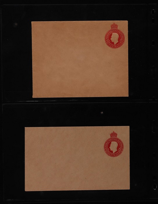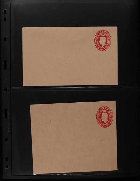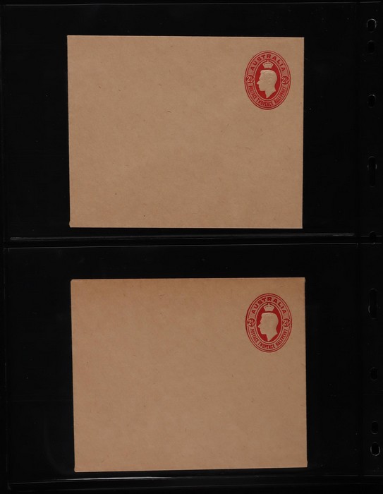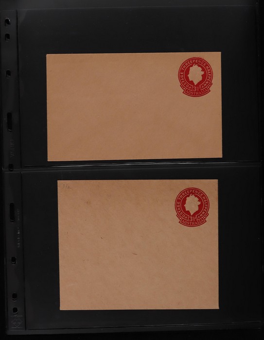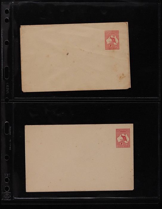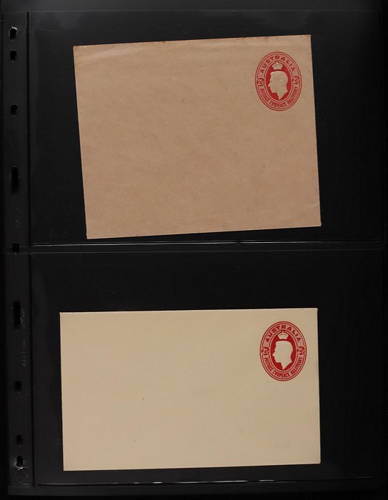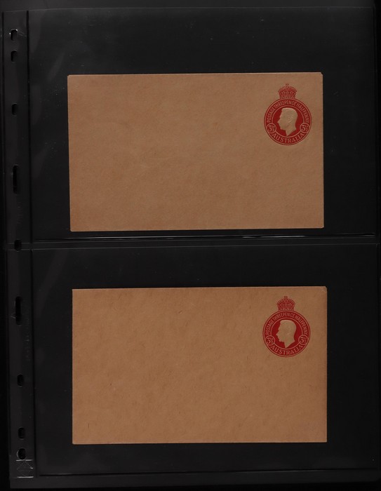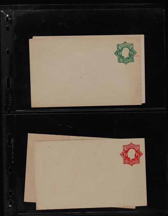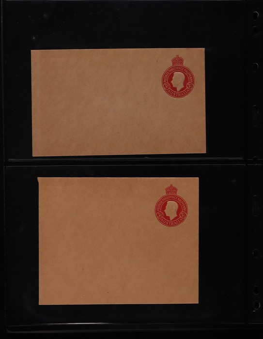 2866 imageEnvelopes: 1913-66 collection mostly PO issues with 1913 Kangaroo 1d red (3), 1916 Star 1½d green (3), 1d green (2), 1d red (10), 1d red + ½d green Doubleton (6), 1½d black-brown (4), 1½d red-brown (17), 2d orange (4), 2d red (3), Surch 1½ on 2d red (2, inc CTO), 1½d green (4), 1½d red (8), KGV oval die 1d green, 1½d red (2), Surch 2d on 1½d red (6), 2d red (16), KGVI Oval 2d red (2), 2½d red (10), 3d red, round die 3d green & 3½d red. QEII 4d plum & 4c red, both with stamp offset on reverse, the 4c uncatalogued. Also Officials Kangaroo 1d red 'OS dots' (3), KGV 1d red OS dots & Star Postage OS in die 2d orange & 2d red. Mostly F-VFU, a few UN, some fronts only, about 10% PTPO. ACSC cat $5350+ for cheapest types. A great collection with many hard to find items. (115) (Image1) (Image2) (Image3) (Image4) (Image5) (Image6) (Image7) (Image8) (Image9) (Image10) (Image11) (Image12) (Image13) (Image14) (Image15) (Image16) (Image17) (Image18) (Image19) (Image20) (Image21) (Image22) (Image23) (Image24) (Image25) (Image26) (Image27) (Image28) (Image29) (Image30) (Image31) (Image32) (Image33) (Image34) (Image35) (Image36) (Image37) (Image38) (Image39) (Image40) (Image41) (Image42) (Image43) (Image44) (Image45) (Image46) (Image47) (Image48) (Image49) (Image50) (Image51) (Image52) (Image53) (Image54) (Image55) (Image56) (Image57) (Image58) (Image59) (Image60)