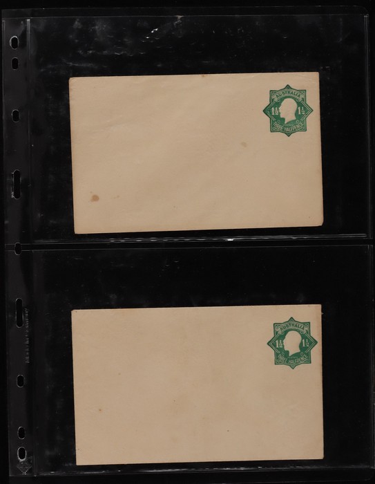 2877 imageEnvelopes - PTPO: 1918-75 Unused collection on Vario pages with 1918 Star ½d+1d Doubleton (ACSC cat $400), 1922 Star 1d violet ($400), 1½d brown ($300), 1½d green ($300), 1½d red (5, $1000), 2d red ($200), KGV Oval 1½d red ($300), 2d red (2, $200), KGVI 1½d green (2, $150), 2½d red, round die 3d green. QEII 3d green (2), 3½d orange & small die, 5d dark blue & light blue (6), 4c red (4), 5c orange (6), 7c mauve (2) & 18c. Mostly F-VF UN. ACSC cat $4750 for cheapest type. UN PTPO rarely seen in quantity & excellent lot for specialist. (40) (Image1) (Image2) (Image3) (Image4) (Image5) (Image6) (Image7) (Image8) (Image9) (Image10) (Image11) (Image12) (Image13) (Image14) (Image15) (Image16) (Image17) (Image18) (Image19) (Image20) (Image21) (Image22) (Image23)