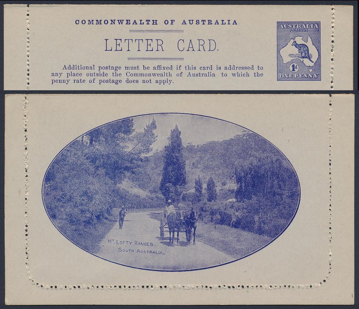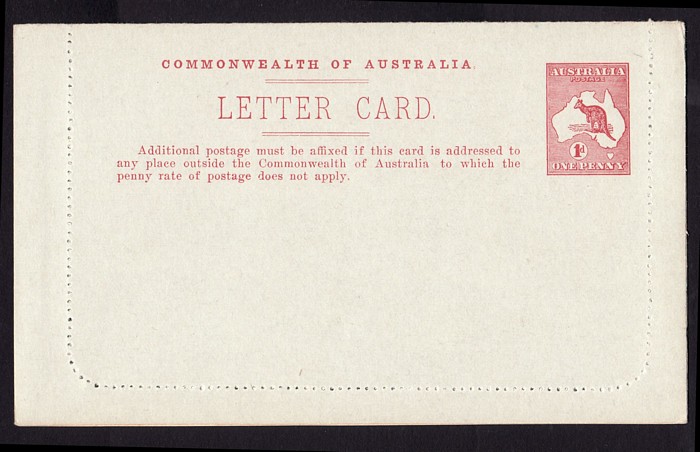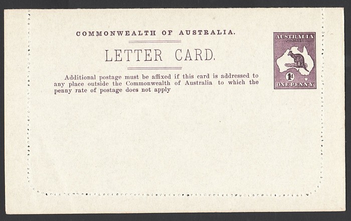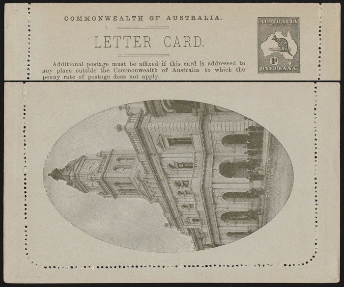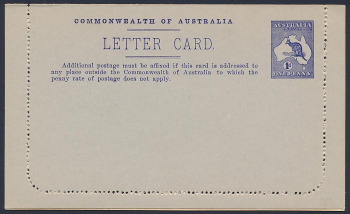 Kangaroo 1d grey, original die, view Central Rly Stn in rectangle. VF UN, front sl aging stripes & with printed address, view side superb. ACSC LC14(32D) cat $250.