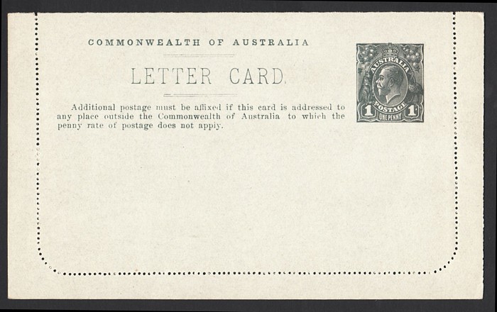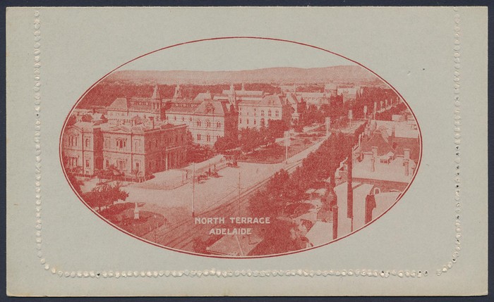 KGV 1d brown-black Die 1, perf 10, view North Terrace Adelaide. F-VF UN, front sl aging at 2 cnrs & margin stuck, view side superb. ACSC LC17(93) cat $150. (Image1) (Image2)