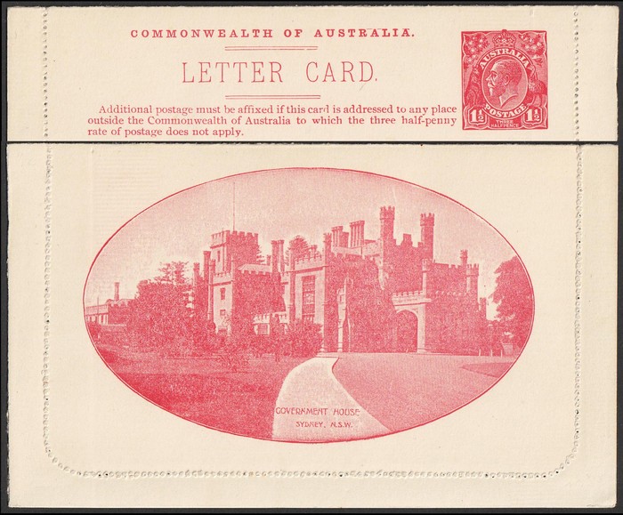 KGV 1½d red on white stock, view Government House Sydney. Superb fresh UN. ACSC LC57(57B) cat $750. Very rare. (P) (Image1) (Image2)
