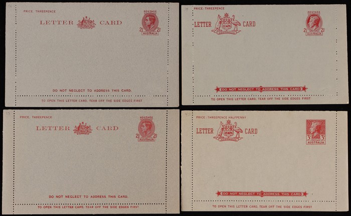 1911-50s collection with View cards (40, inc 22 UN) with earlier Fullface (2 UN, 2 U) thick white stock (UN, 2 U), Fullface Double Reply (2 UN), Kangaroos (4 UN), KGV perf 10 (9 UN, 2 U), perf 12 (2 UN, 7 U), 1½d (1 UN, 3U), 2d orange on cream