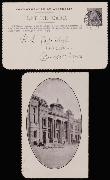 KGV 1½d on 2d red view Zoo Adelaide. View side superb fresh UN, suntan bars on text side. ACSC LC54(142C) cat $400. (Image1) (Image2)