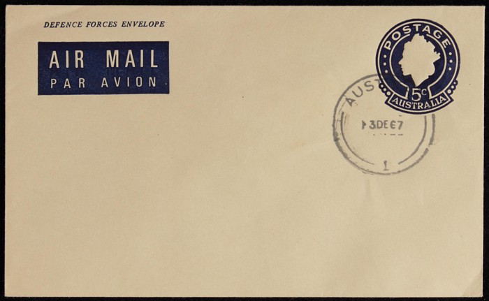 Vietnam QEII 5c indigo embossed envelope. VF fresh 1967 CTO 'Aust FPO' cds. ASC XI.14 cat $100 for UN. (Image1)