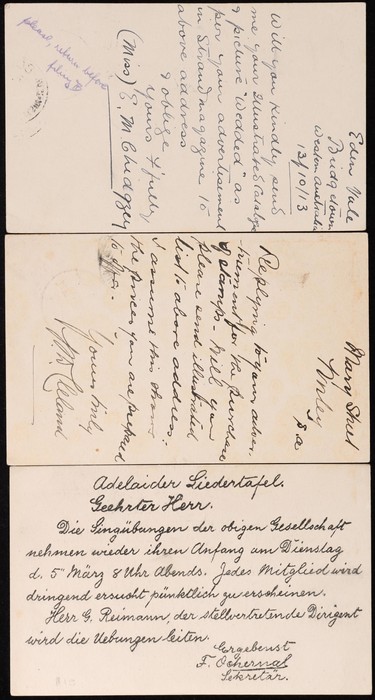 Fullface 1d red, 'Address Only' admonition white/off white stock. To Germany with 'T 10' h/s struck out & readdressed twice, with 'Perth 3 DEC 12' pmk. VFU. ACSC P1 cat $35.