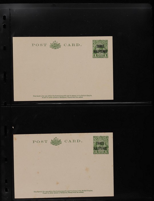 $420. Then Used with 1911 Fullface 'address only', Coronation cards (6, $450), View cards (flts, 2), 1d red 'the left half', 1913 Kangaroo 1d white & buff stocks, KGV 1d red (2, $200) & extra text, 1918 Surch 1½d on 1d red (4), 1919 1½d