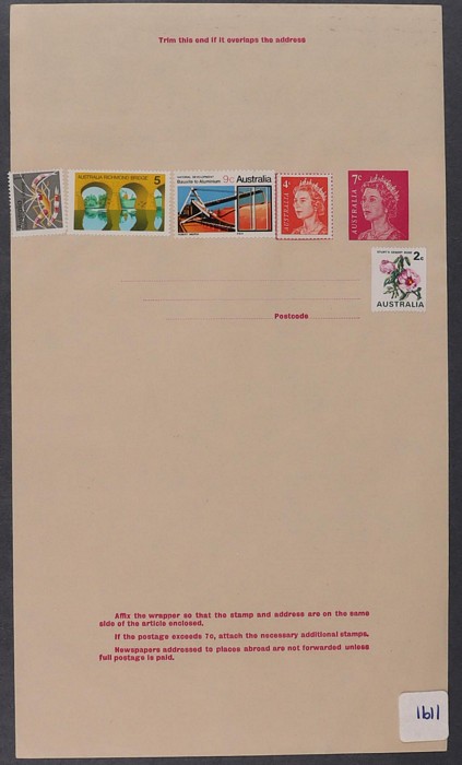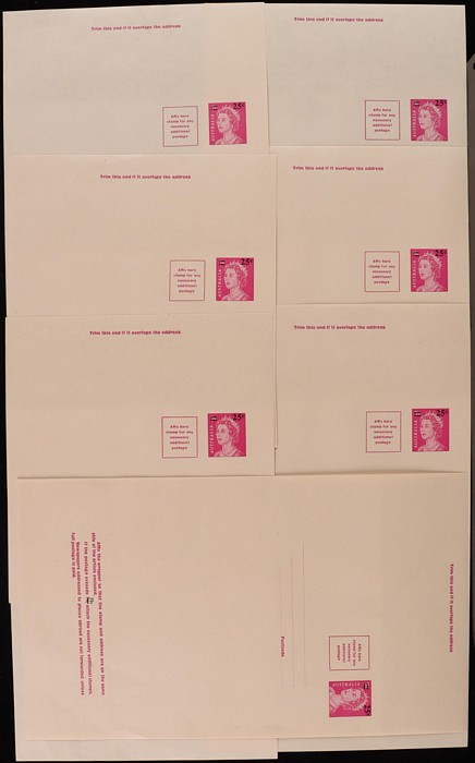 3322 imageSpecial Despatch Service: Small group of three covers, one front & a large piece at 10c, 13c, 24c, 30c (30c Flower solo) & 57c rates, mostly airmail, from Adelaide, Brisbane or Canberra, plus sheet of labels & a PO publicity card, also a few sheets/blks etc of Priority Paid labels. A little used service usable from a limited number of boxes in capitals. We note that individual Special Despatch covers have realised $260 & $420 at Melbourne auctions. (5) (Image1) (Image2) (Image3)