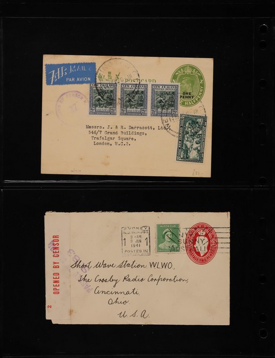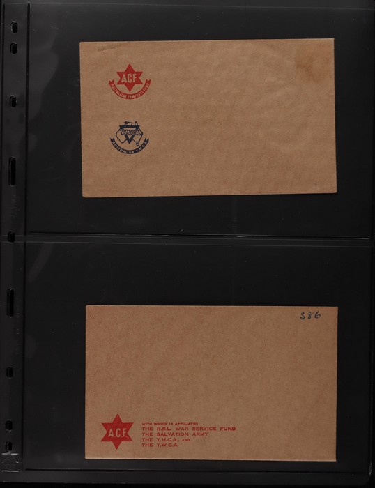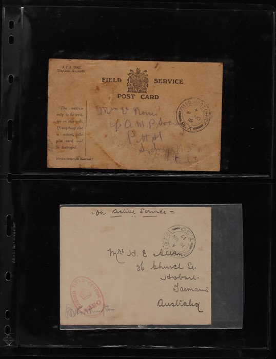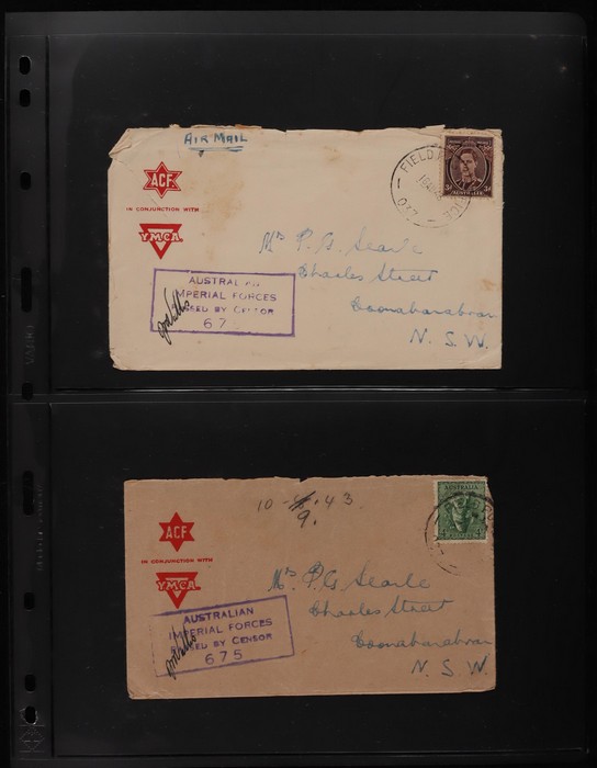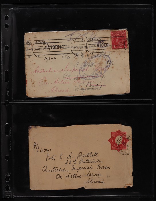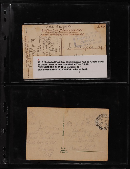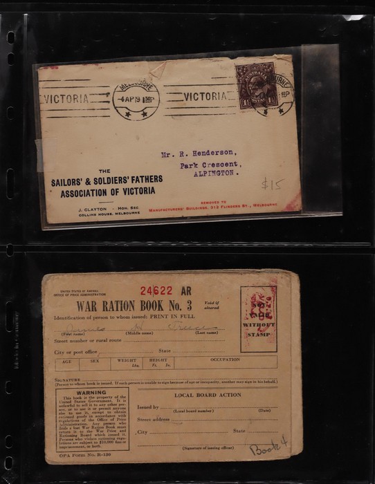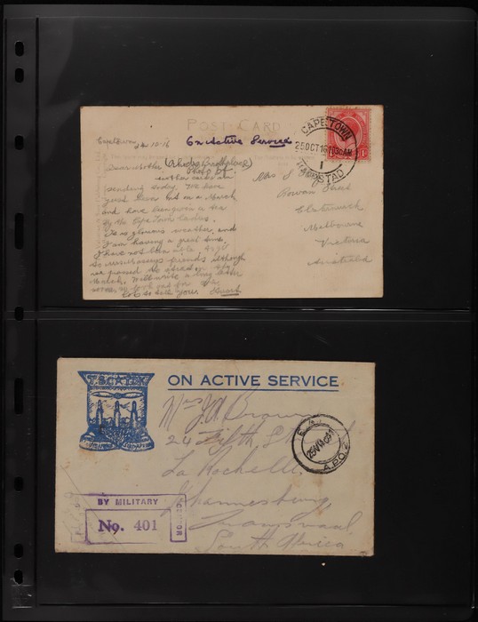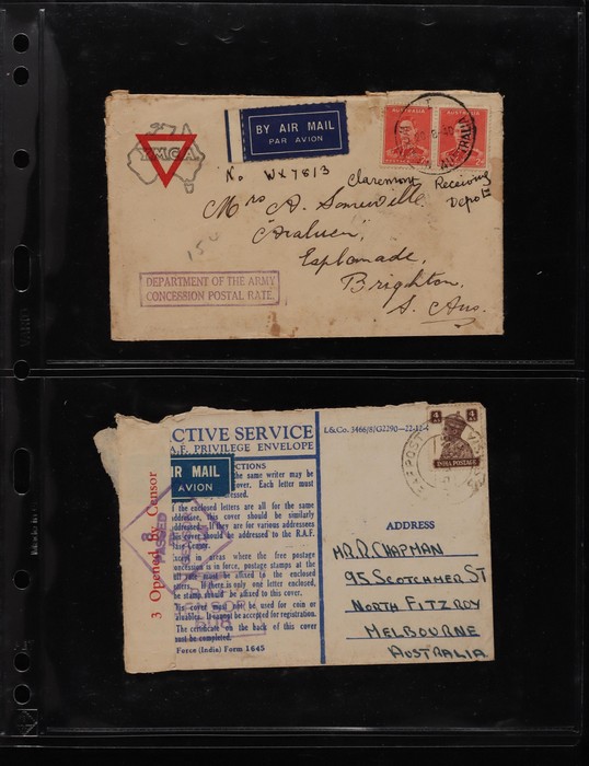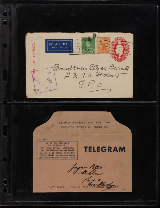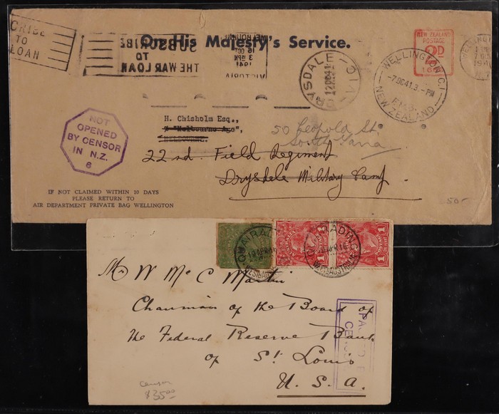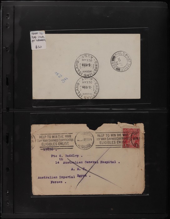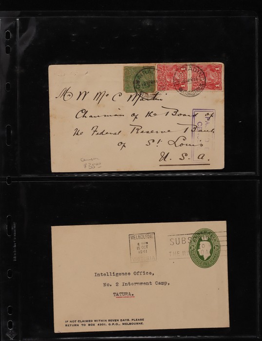 3317 imageMilitary & Censor Mail collection with Postal Stationery inc KGV 1d red card uprated to Holland with Brisbane Censor red cds, Military envelope KGV 1d red (3 UN) ACSC MEI (2) & MES - ACSC cat $900, plus KGVI wrapper to USA envelopes, Vietnam envelope & Airletter ea UN & CTO plus stampless Pic envelopes UN (10), 1941-42 Defence Canteens envelopes 1d brown (2) & 1d green (6) cat $180+, 1943 use of Queen 1d+1d green Doubleton Postcard uprated to USA. WWI FPO & Active Service cards inc '2 Aust LH BDE Field PO 1900' cds, covers with KGV 1d red, 1½d black-brown, 2d orange inc perf OS. The mostly WWII with censored inc various cachets, KGVI 5½d red envelope uprated opt BCOF ½d with Army PO cds, 1950 Reg envelope uprated by Air to Israel with censor tape, to/from inc India, USA, NZ, Sth Africa, Algeria 1944 to Australia with Algeria?, USA & Australia censor h/s. GB & Australia Postage Dues, USA intact Ration Book & much more. (100+) (Image1) (Image2) (Image3) (Image4) (Image5) (Image6) (Image7) (Image8) (Image9) (Image10) (Image11) (Image12) (Image13) (Image14) (Image15) (Image16) (Image17) (Image18) (Image19) (Image20) (Image21) (Image22) (Image23) (Image24) (Image25) (Image26) (Image27) (Image28) (Image29) (Image30) (Image31) (Image32) (Image33) (Image34) (Image35) (Image36) (Image37) (Image38) (Image39) (Image40) (Image41) (Image42) (Image43) (Image44) (Image45) (Image46) (Image47) (Image48) (Image49) (Image50) (Image51) (Image52) (Image53) (Image54) (Image55) (Image56)