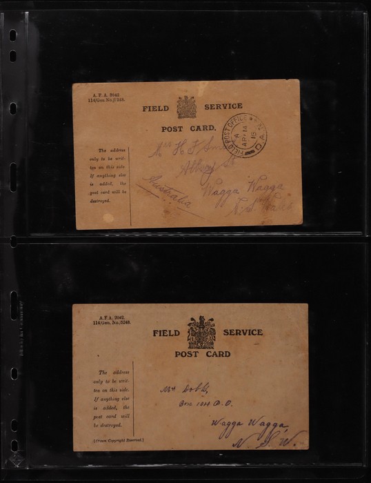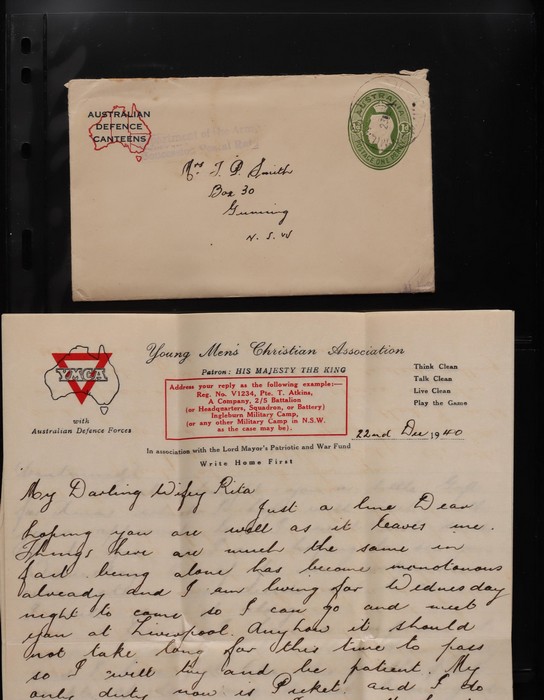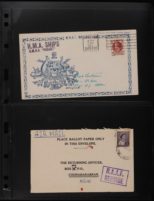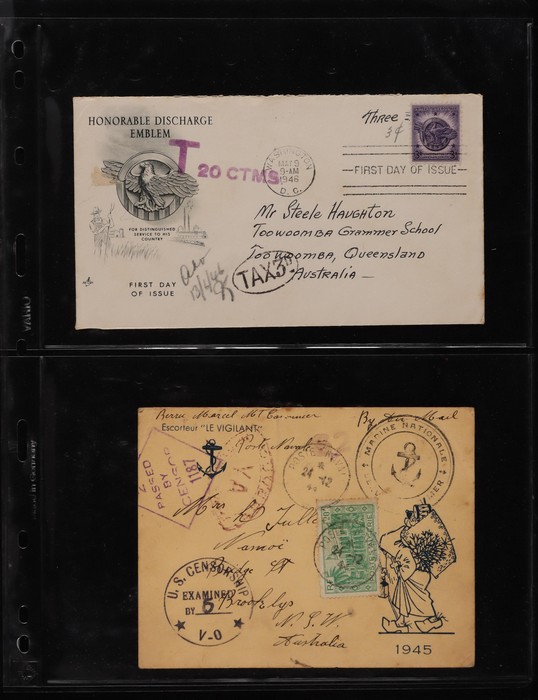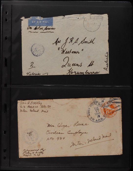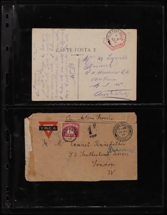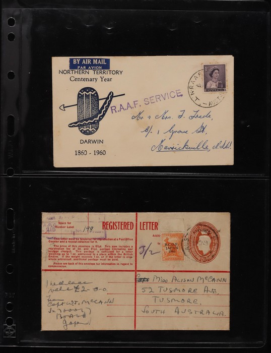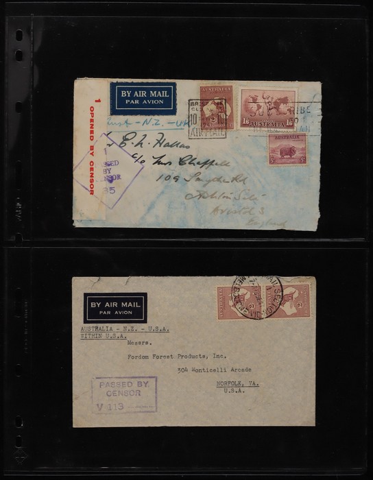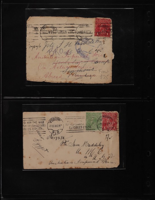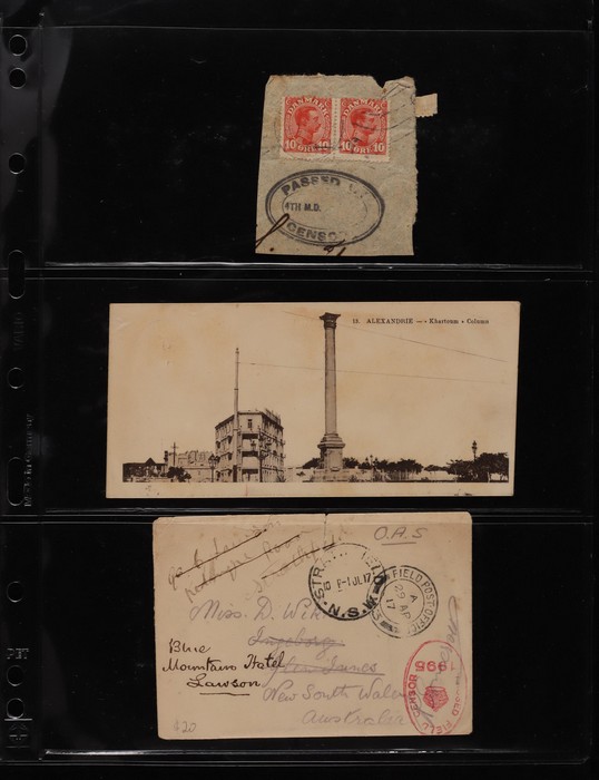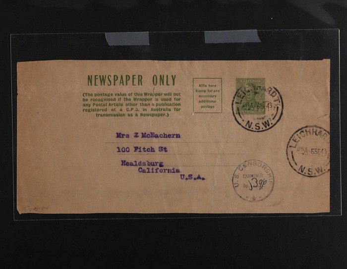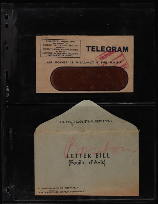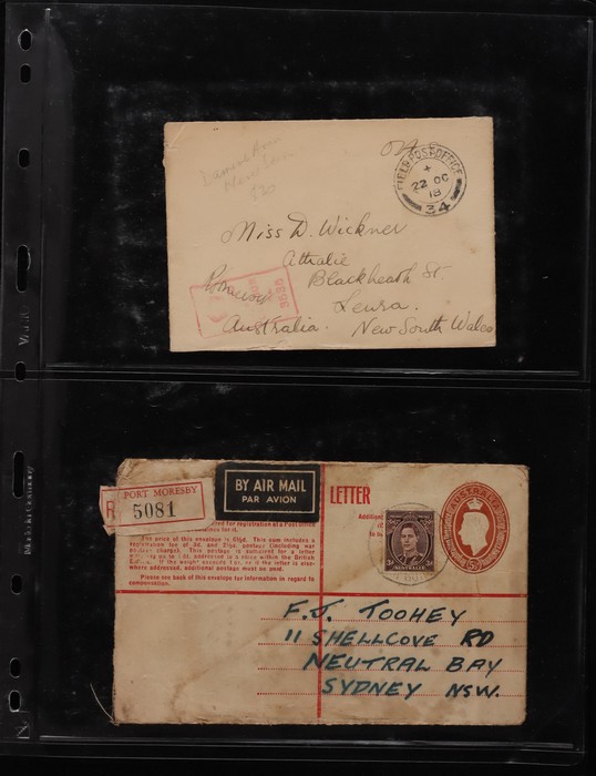 3317 imageMilitary & Censor Mail collection with Postal Stationery inc KGV 1d red card uprated to Holland with Brisbane Censor red cds, Military envelope KGV 1d red (3 UN) ACSC MEI (2) & MES - ACSC cat $900, plus KGVI wrapper to USA envelopes, Vietnam envelope & Airletter ea UN & CTO plus stampless Pic envelopes UN (10), 1941-42 Defence Canteens envelopes 1d brown (2) & 1d green (6) cat $180+, 1943 use of Queen 1d+1d green Doubleton Postcard uprated to USA. WWI FPO & Active Service cards inc '2 Aust LH BDE Field PO 1900' cds, covers with KGV 1d red, 1½d black-brown, 2d orange inc perf OS. The mostly WWII with censored inc various cachets, KGVI 5½d red envelope uprated opt BCOF ½d with Army PO cds, 1950 Reg envelope uprated by Air to Israel with censor tape, to/from inc India, USA, NZ, Sth Africa, Algeria 1944 to Australia with Algeria?, USA & Australia censor h/s. GB & Australia Postage Dues, USA intact Ration Book & much more. (100+) (Image1) (Image2) (Image3) (Image4) (Image5) (Image6) (Image7) (Image8) (Image9) (Image10) (Image11) (Image12) (Image13) (Image14) (Image15) (Image16) (Image17) (Image18) (Image19) (Image20) (Image21) (Image22) (Image23) (Image24) (Image25) (Image26) (Image27) (Image28) (Image29) (Image30) (Image31) (Image32) (Image33) (Image34) (Image35) (Image36) (Image37) (Image38) (Image39) (Image40) (Image41) (Image42) (Image43) (Image44) (Image45) (Image46) (Image47) (Image48) (Image49) (Image50) (Image51) (Image52) (Image53) (Image54) (Image55) (Image56)