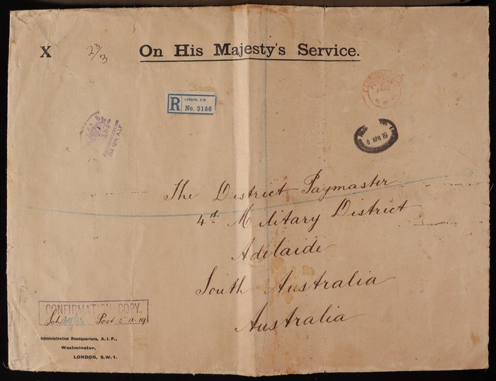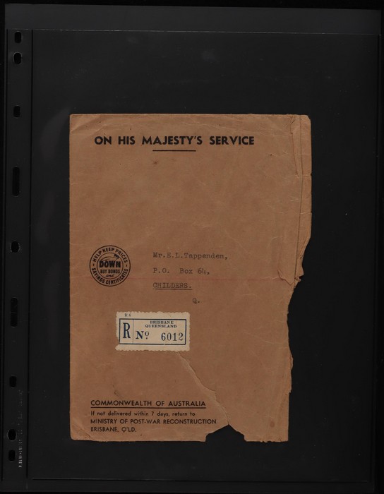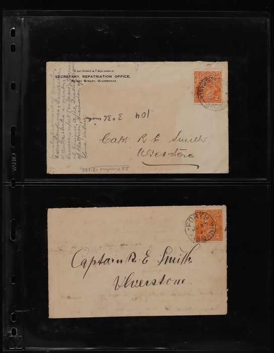 3318 imageOfficial Mail: 1940 use of stampless OHMS Money Order Advice envelopes (4) to 'The Triangle' PO in UK, 3 with London Official Paid pmks, 1 with h/s 'Via Airmail Australia - Singapore', plus 1 uncancelled. Also Airgraph Letter envelopes apparently used for ordinary mail with 'Airgraph' struck out & addressed above the window -both Used 'Geraldton 14 SE 43'. (6) (Image1) (Image2) (Image3)