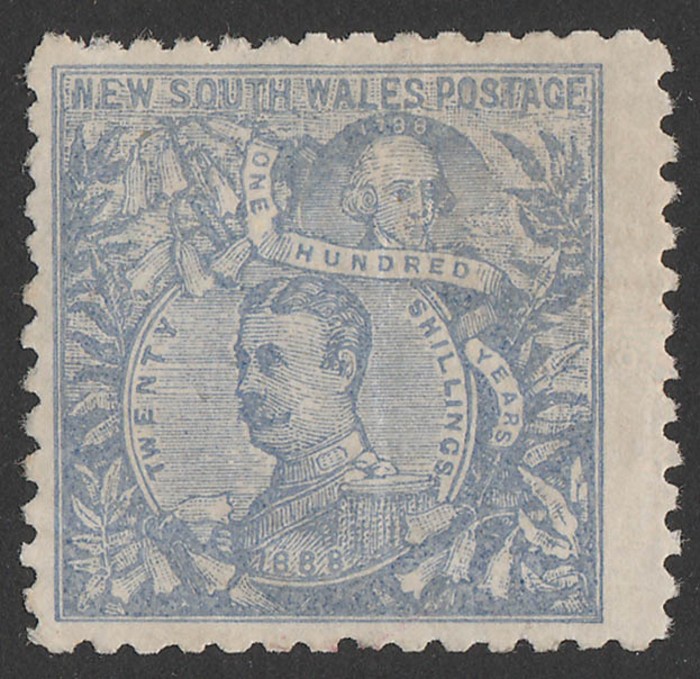 20/- cobalt-blue, wmk 20/- NSW in circle, perf 10. VF fresh MLH. Scott 88c cat US$500, SG 264 cat £500. (P) (Image1)