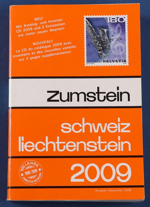 Switzerland/Liechtenstein: 2009 Zumstein catalogue with 800+ colour pgs inc booklets, se-tenant multiples, Pro Juventute & Pro Patria, Hotel Posts & United Nations. Liechtenstein inc Airmails, framas & Officials. Near new, retail A$60+. (Image1)
