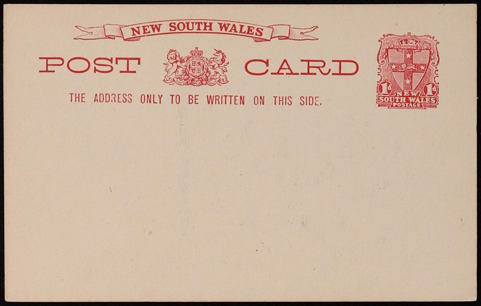 1d red Die II, cream card, view Hawkesbury River in black, 'Greetings' in orange-buff. Superb fresh UN. PSSA PC21a. (Image1) (Image2)