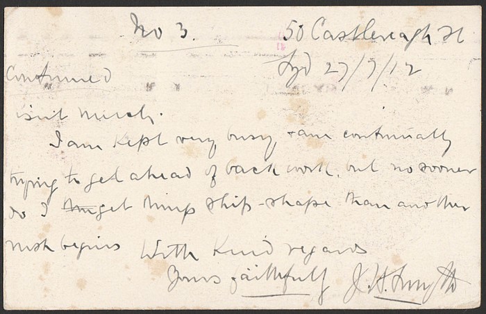 1d red die 2 with 3 extra lines of script text, view Fairy Dell in black, 'Greetings' in grey. Superb fresh UN. PSSA PC27a. (Image1) (Image2)