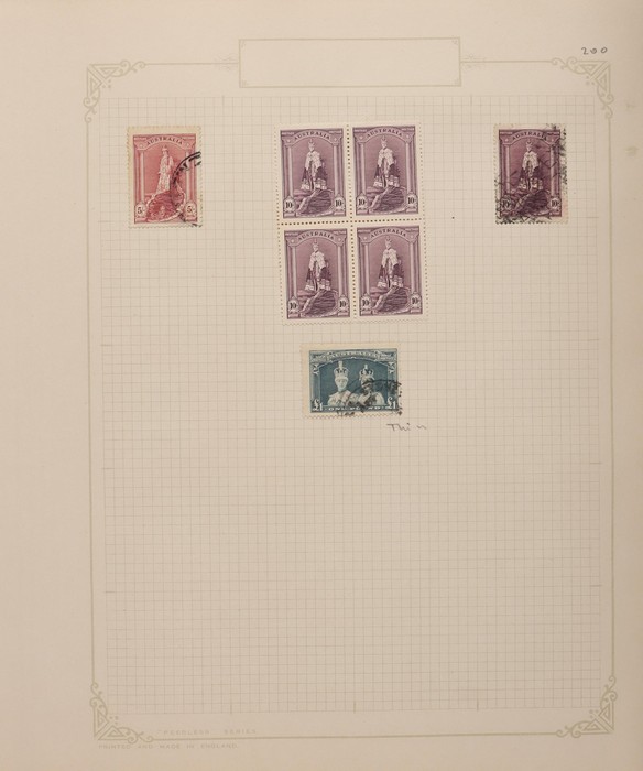 364 image1913-50 Pre Decimal collection on pgs inc Roos (22) G-VF U inc 1st wmk to 2/-, 3rd wmk 5/-, 10/-, £1 light brown & blue (cat £2500) the last 2 both G-FU, plus SM/CofA wmk to 2/- M/MNH. KGV single wmk to 1/4 inc 4d lemon-yellow, LM wmk 1d red, SM wmk perf 14 to 1/4, CofA wmk to 1/4, (4d, 5d 1/4 MNH), range of 1930s KGV/KGVI commems inc 1934 Vic set to 1/-, Macarthur to 9d. 10/- Robes blk of 4 thick paper & £1 thin paper. KGVI 1937-40s defs, & some Postage Dues 1902 to 10d, 1909 to 5/-. Mostly F-VF M/MLH/U, some mixed condition. ACSC cat $9000. (170+). (P) (Image1) (Image2) (Image3) (Image4) (Image5) (Image6) (Image7) (Image8) (Image9) (Image10) (Image11) (Image12) (Image13) (Image14) (Image15) (Image16) (Image17) (Image18) (Image19) (Image20) (Image21)
