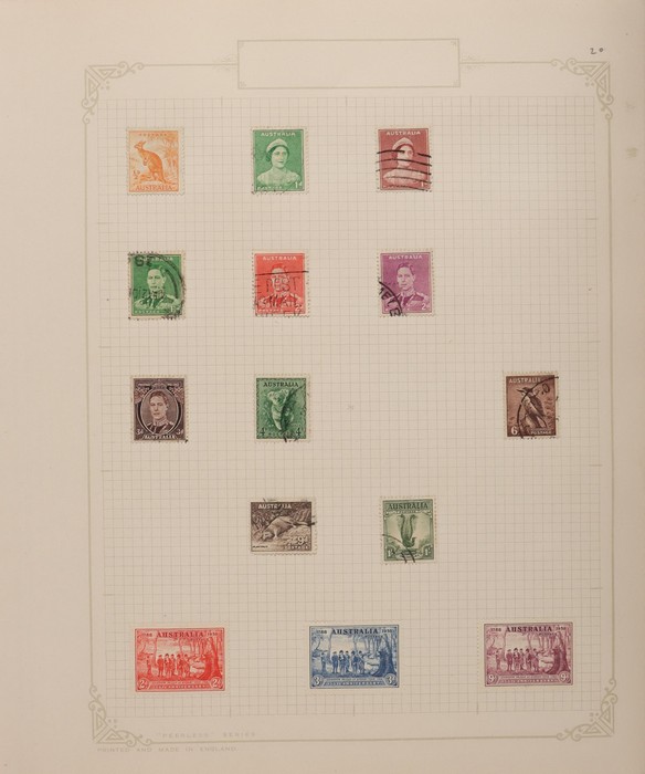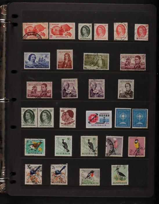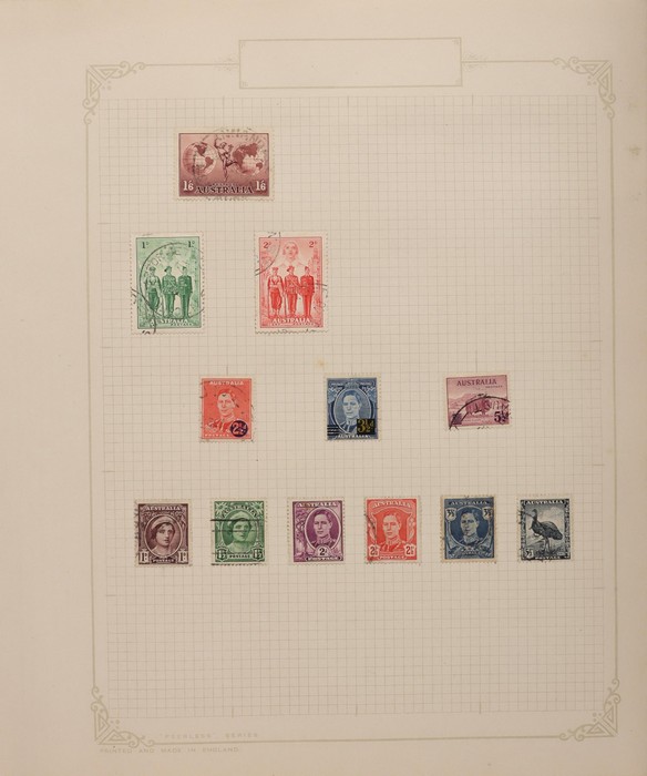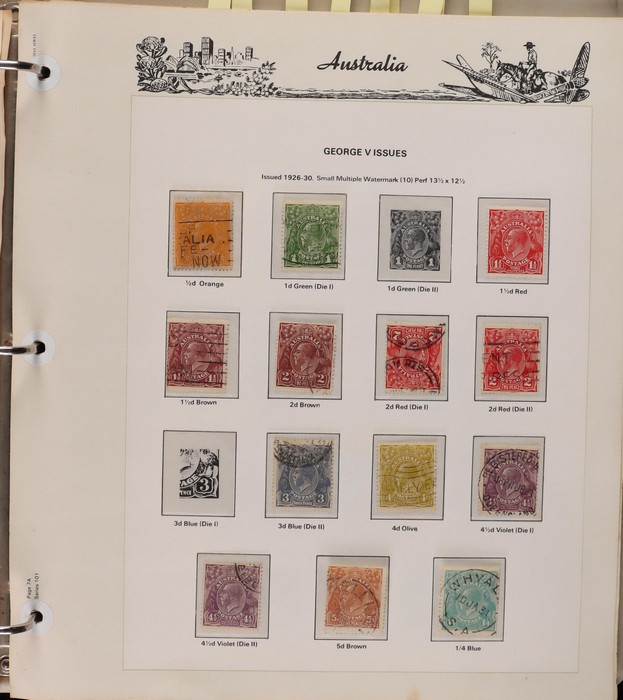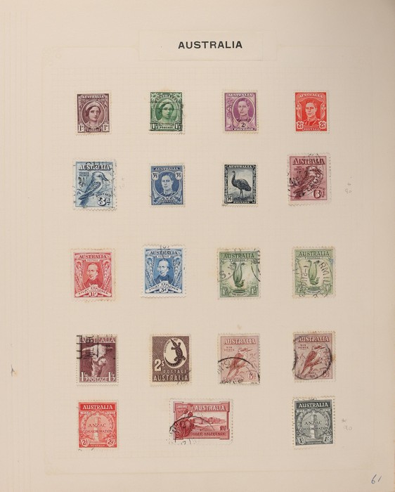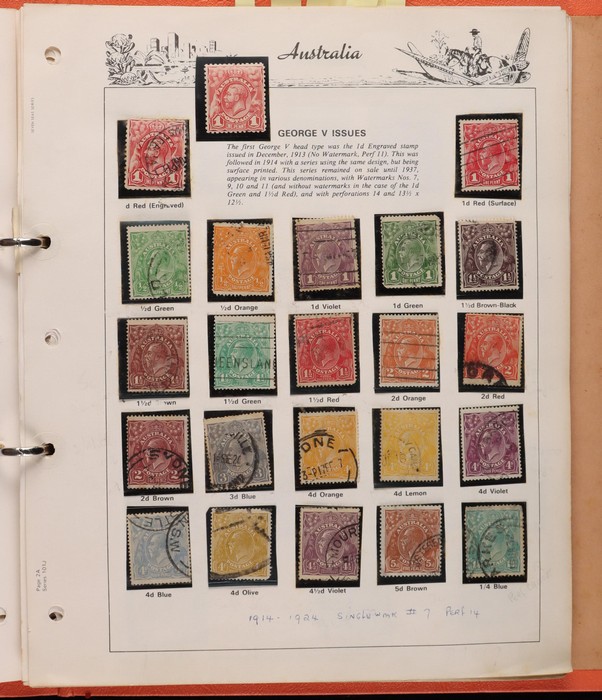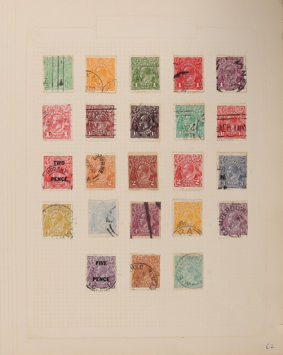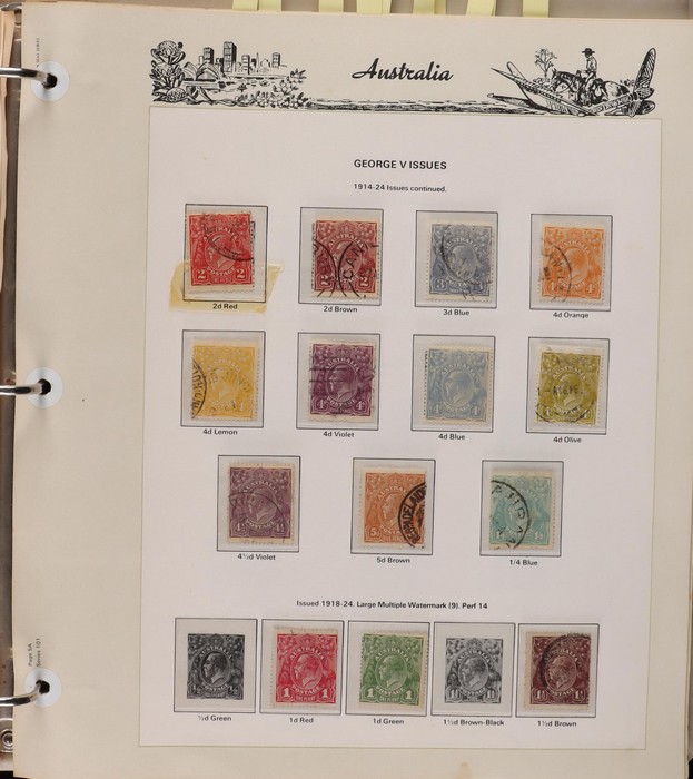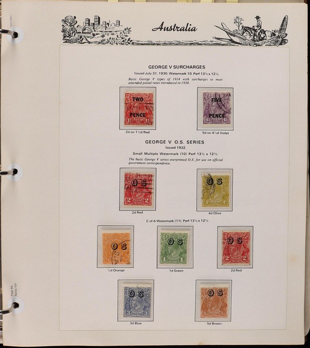 376 image1913-65 Used collection in Seven Seas hingeless album with Kangaroos 1st wmk set to 2/- brown inc 5d CTO Melbourne, 2nd wmk 2d, 6d & 1/-, 3rd wmk set to 2/- maroon, SM to 2/-, plus 6d chestnut opt OS & CofA to 5/- inc 6d opt OS. Total ACSC cat $1200. KGV (58) with 1st wmk to 1/4 inc 1d red Dies II & III, 4d lemon & 4d blue. LM wmk 1d carmine, SM wmk to 1/4 inc 4½d Die II, CofA wmk set & OS opts to 5d brown. Odd CTO, mostly F-VF U, cat $700. 1914 Kookaburra 6d Engraved VFU, 1931 Kingsford Smith set to 6d brown, plus 2d & 6d opt OS. 1932 Bridge 2d, 3d & Lyrebird 1/- all opt OS. 1934 VIC Centenary sets to 1/- (both), 1935 ANZAC 1/- & KGV Silver Jubilee set to 2/- UN. 1937 KGVI set of 22 inc Robes 5/-, 10/-, £1 thick & thin papers UN, cat $280 as M. 1949 Arms set F-VFU. Pre-dec QEII comp inc 1959 Pics to 5/- Cattle, white paper, 1964 Navigator set of 8 to £2 & all high val Commems. A solid G-F/VFU collection, total cat val $3000. (P) (Image1) (Image2) (Image3) (Image4) (Image5) (Image6) (Image7) (Image8) (Image9) (Image10) (Image11) (Image12) (Image13) (Image14) (Image15) (Image16) (Image17)