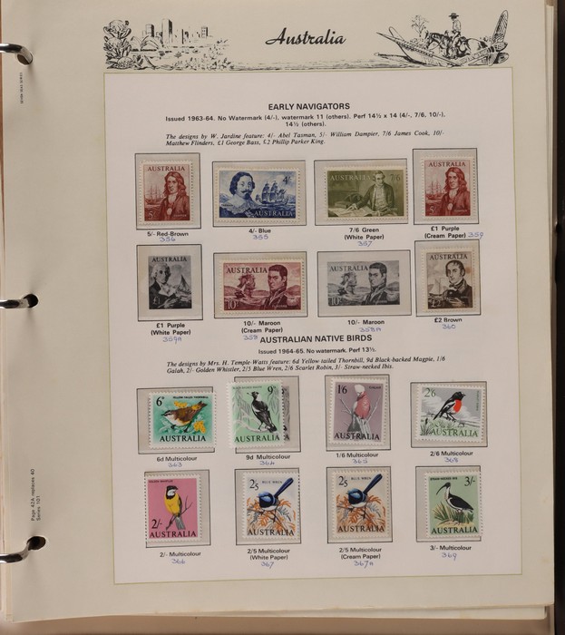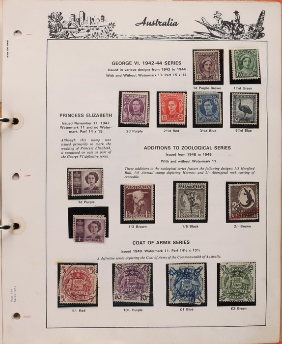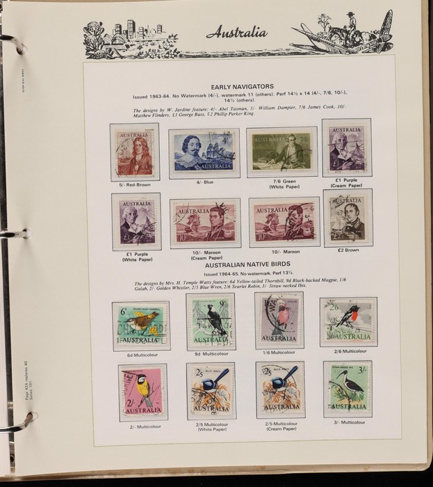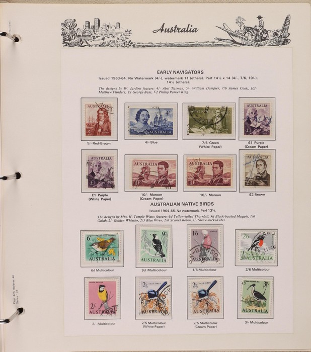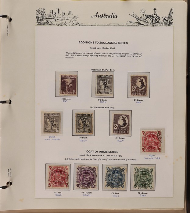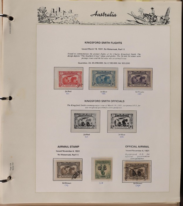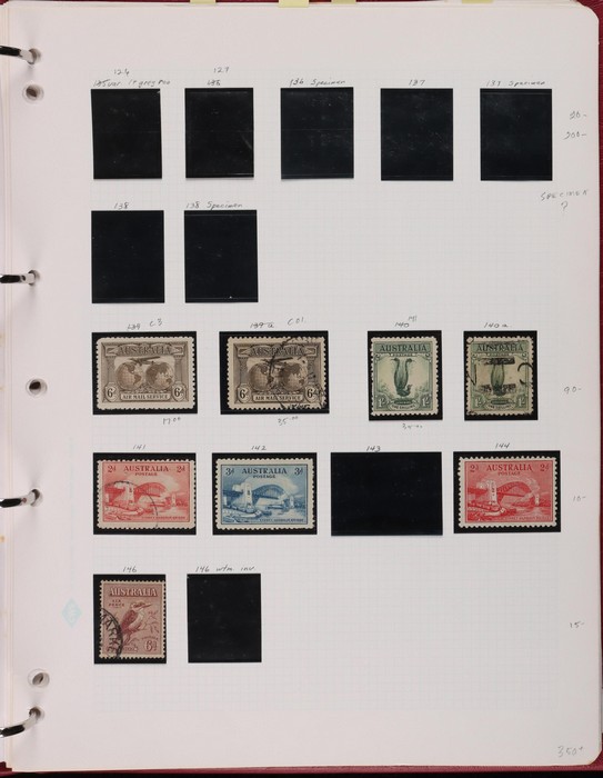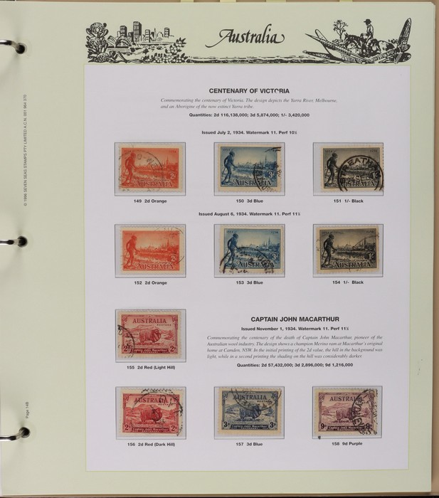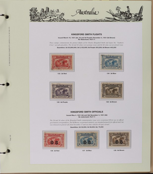 371 image1913-65 collection on Seven Seas pages inc Roo 1st wmk to 1/-, 2nd wmk to 1/-, 3rd wmk to 5/-, CofA wmk to 10/-, KGV comp single wmk to 1/4 inc 1d red Die II & III, SM perf 14 comp to 1/4, CofA comp to 1/4, 6d engraved Kooka, 1931 Kingsford Smith comp inc opt OS,1930-40s commems comp, 1937, Robes 5/- to £1 inc both papers, 1949 Arms comp to £2, 1964 Navigators comp set of 8 to £2. Odd flts, mainly F-VFU. ACSC cat $4900. (250). (Image1) (Image2) (Image3) (Image4) (Image5) (Image6) (Image7) (Image8) (Image9) (Image10) (Image11) (Image12) (Image13)