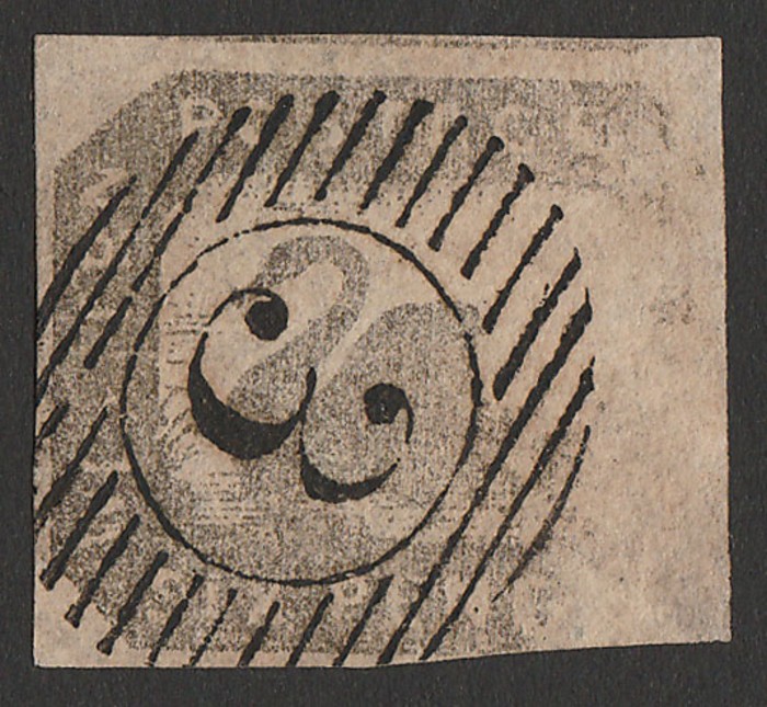 grey-black lithographed, imperf. VFU, 4 margins, barred oval pmk. Scott 4 cat US$700. SG 19 cat £600. (P) (Image1)