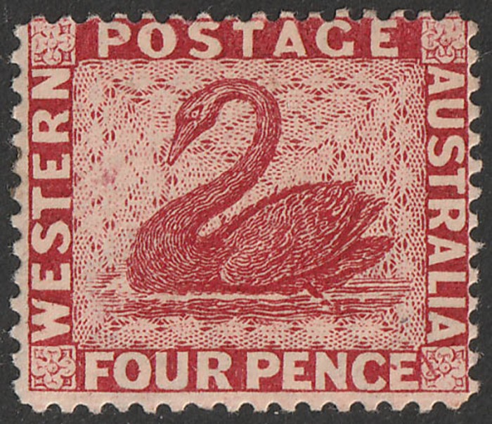 rose-carmine, wmk Swan, rough perf 14-16. F-VFM. Scott 24B cat US$375. SG 44 cat £350. (P) (Image1)