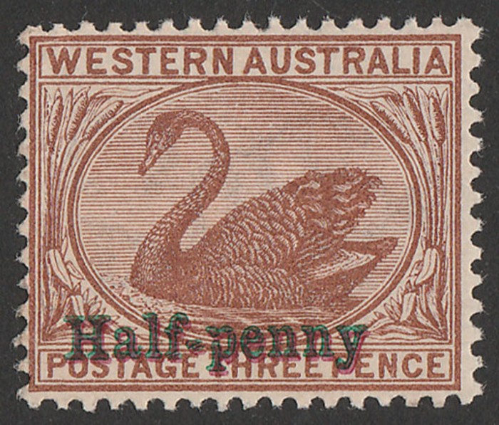 opt Swan 3d red-brown, opt in red & green, opts overlapping, wmk crown CA. VF MNH. SG 111b cat £85 for M, should be £170 MNH. (P) (Image1)