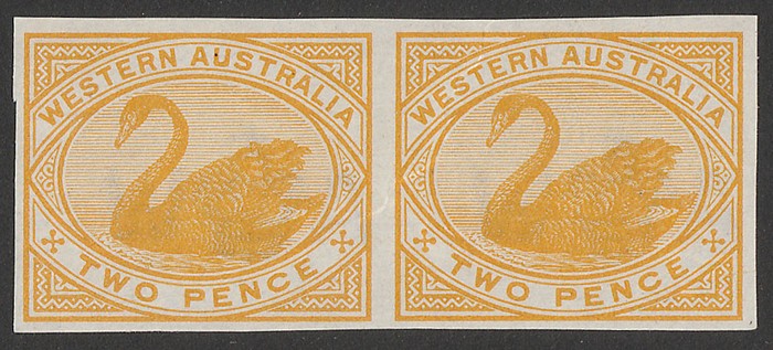 yellow, IMPERF horiz pr, wmk W crown A, from DLR archive imprimatur sheet. Superb fresh MNH, all 4 margins. SG 113(p). Very rare, only 1 sheet existed. (P) (Image1)