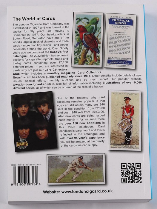 3863 imageCigarette & Trade Cards Catalogue 2022 edition, pub by London CCC, 417pgs inc cigarette, tea, gum, magazine, oil company, TV 'tie ins' & other trade cards, plus reprint valuations. New! (Image1) (Image2)
