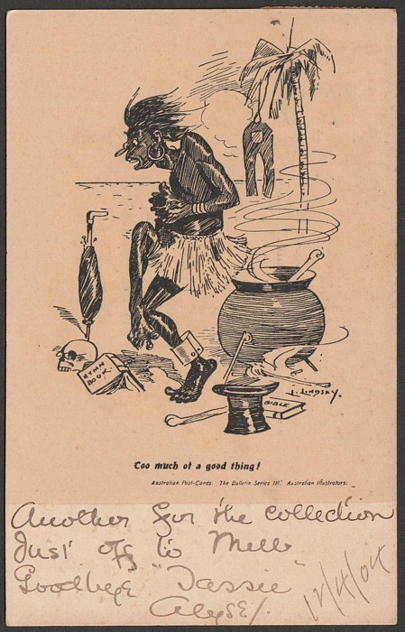 Lionel Lindsay Cannibal 'Too much of a good thing'. VF Postally Used. (Image1)
