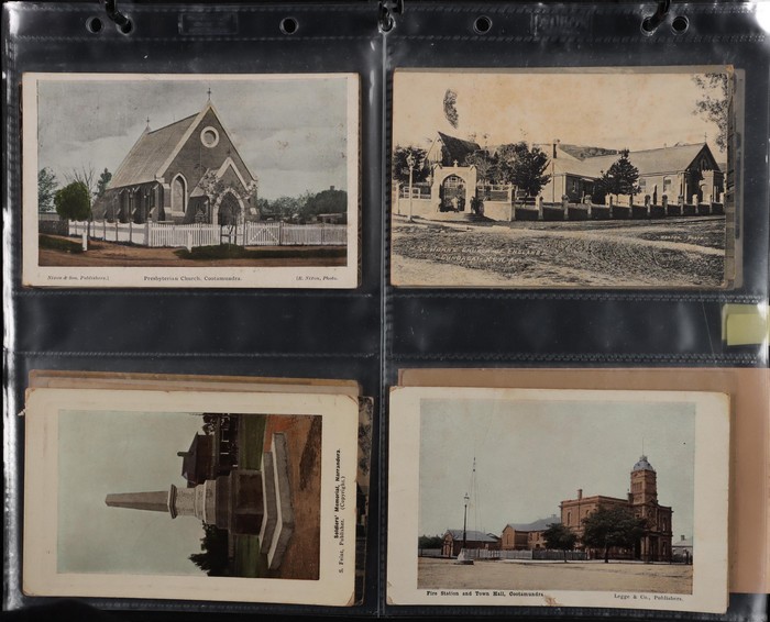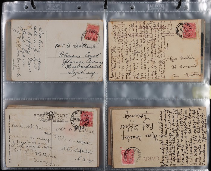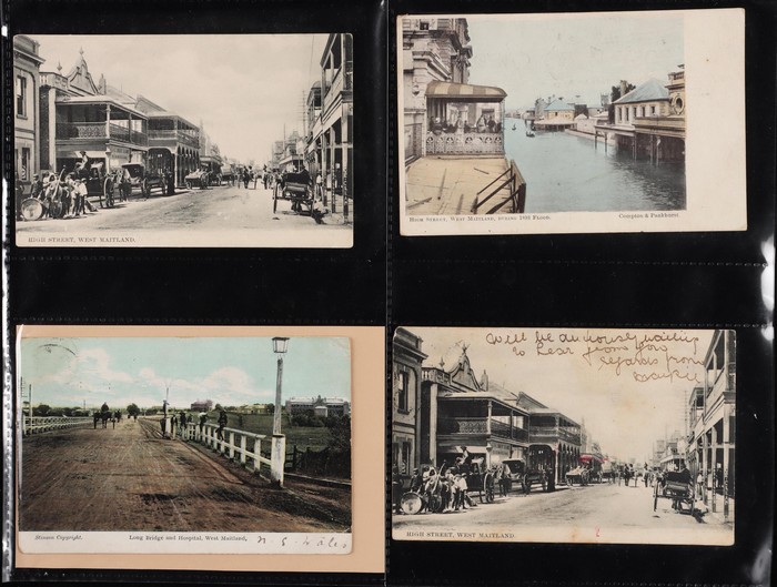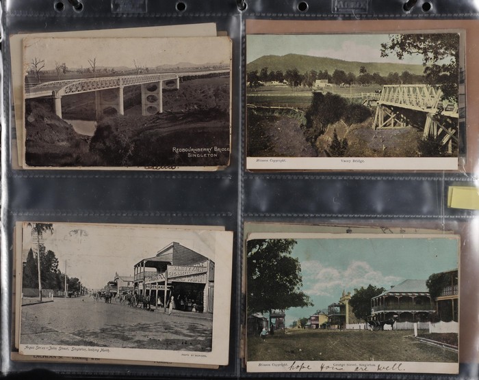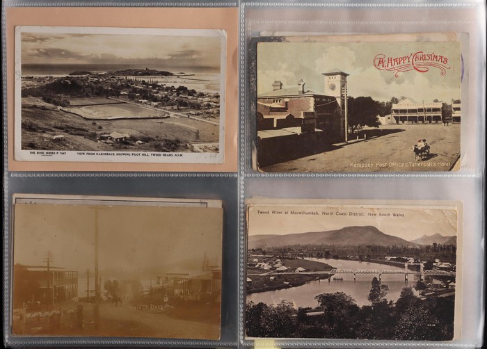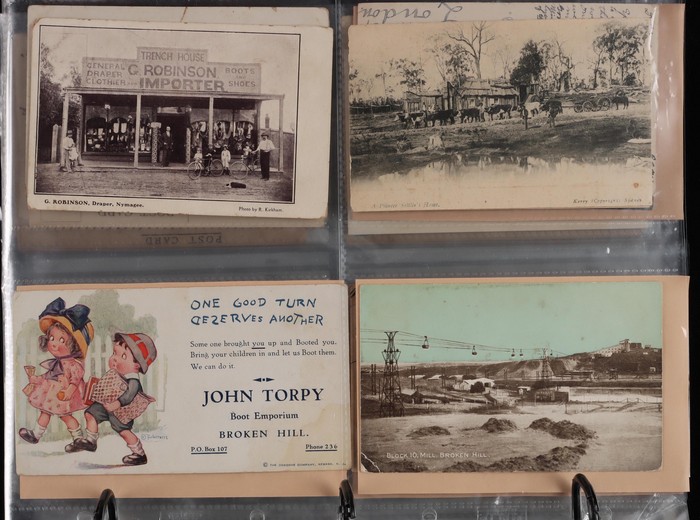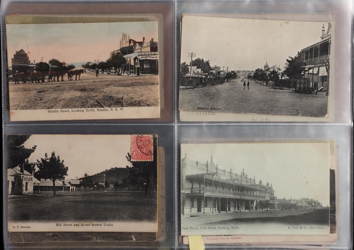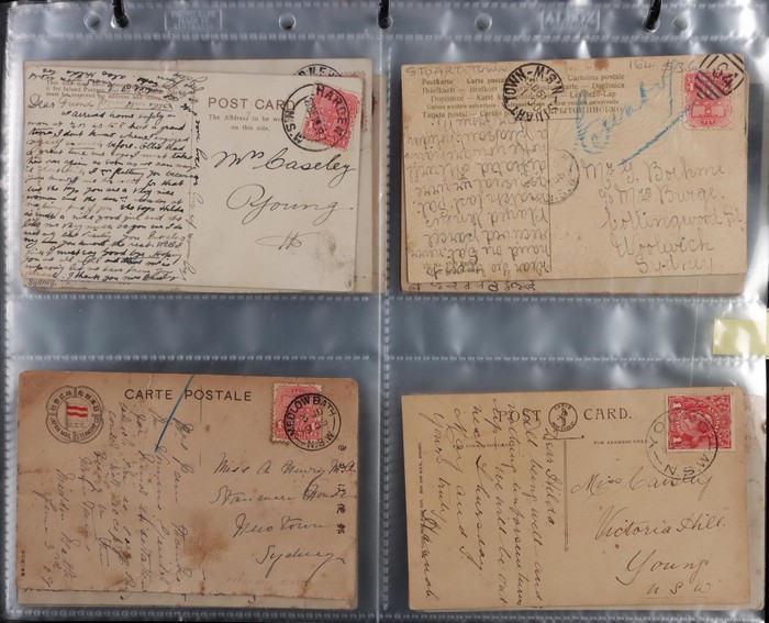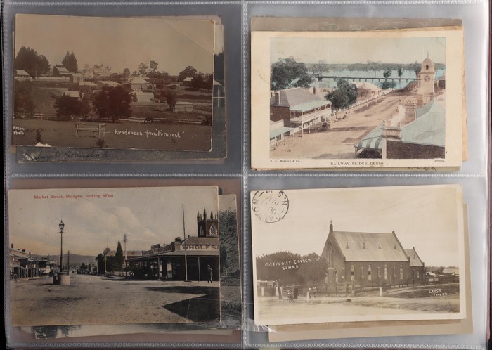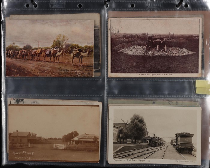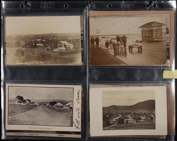 Sites. Other NSW Country cards (56) inc Bourke Floods, White Cliffs Opal Fields, Nynhan Rly Station, Singleton Streets, Wagga Wagga, Forbes, Paterson, Merrima & more. Then 2nd volume with NSW pmks (60) to 1914 on mostly misc/greeting PPC inc Cobbora,
