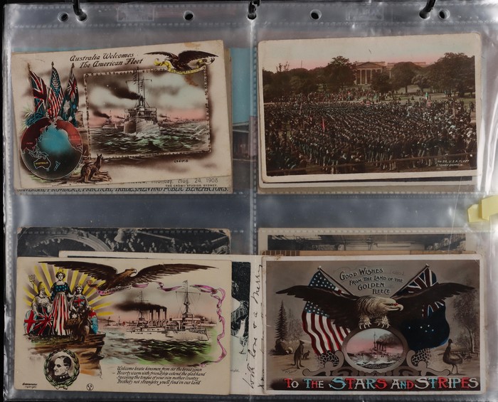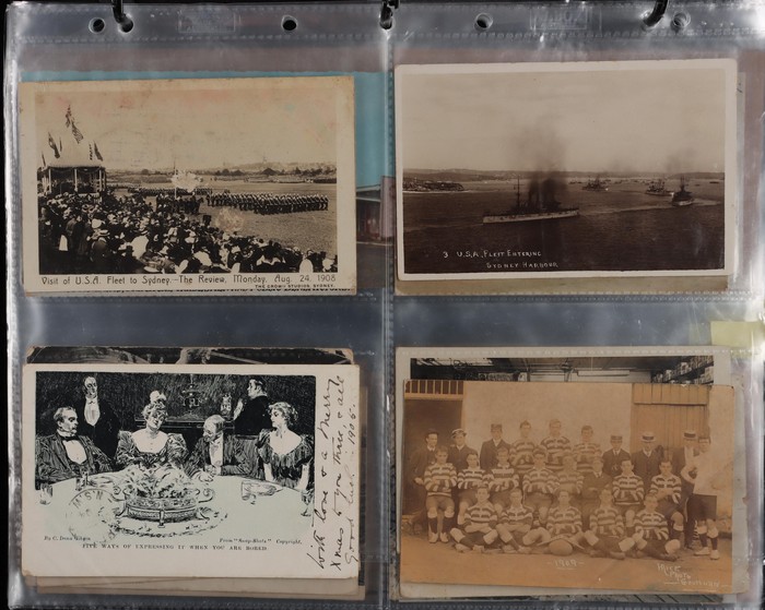 South Wales 1908 USA Fleet Visit (6) inc Sydney Harbour & Sydney Domain real photos. Sydney Advertising Cards inc Anthony Hordens, Gowing Bros & Lyceum Residential Caf?. Country Towns with Broken Hill (28) inc Street Scenes, Mining Views & Local