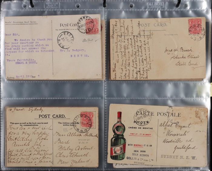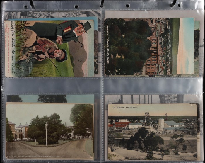 of UK cards inc Comic, Artist Cards & City Scenes. Huge variety (see scans) inc NSW Zieher stamp card, Bulletin Australians at Cricket, 1901 Federal Greeting, Sydney Street Scenes, Railway Stations & others. Mostly F-VF Postally Used with wide range