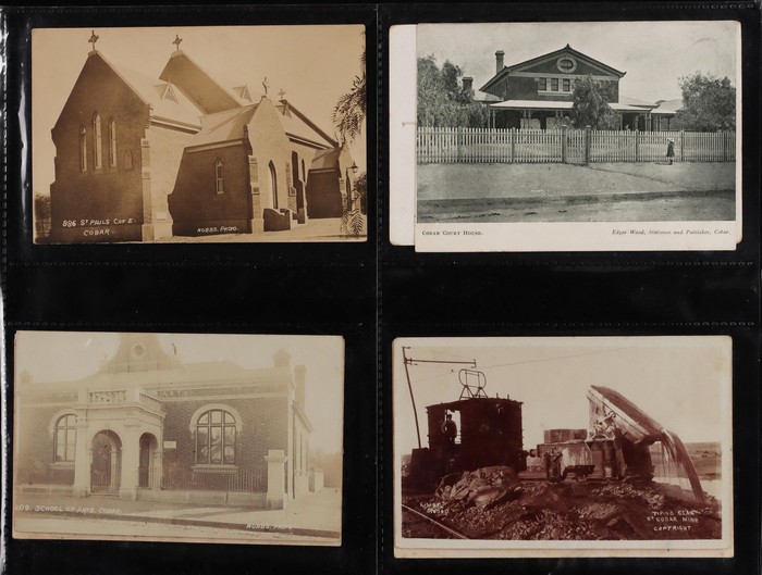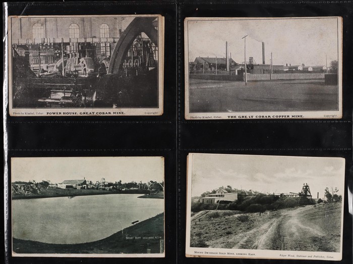 South Wales: Cobar collection mostly pre WWI (82) inc Town Views, Street Scenes, Public Buildings, Copper/Gold Mines inc Boppy Mountains, Canbelogo, Great Cobar, Mount Drysdale, Occidental & Chesny Mine Wrightville. Some duplicates, mostly Postally